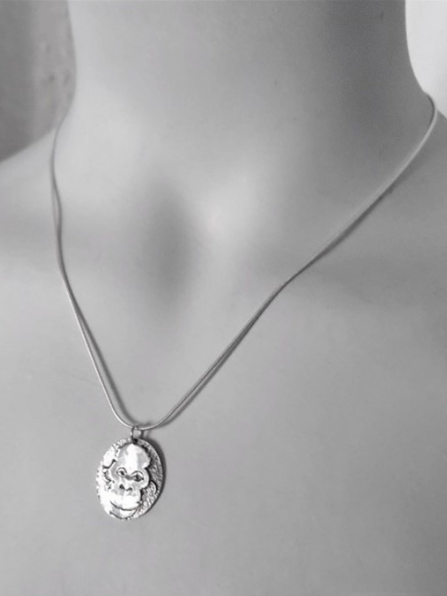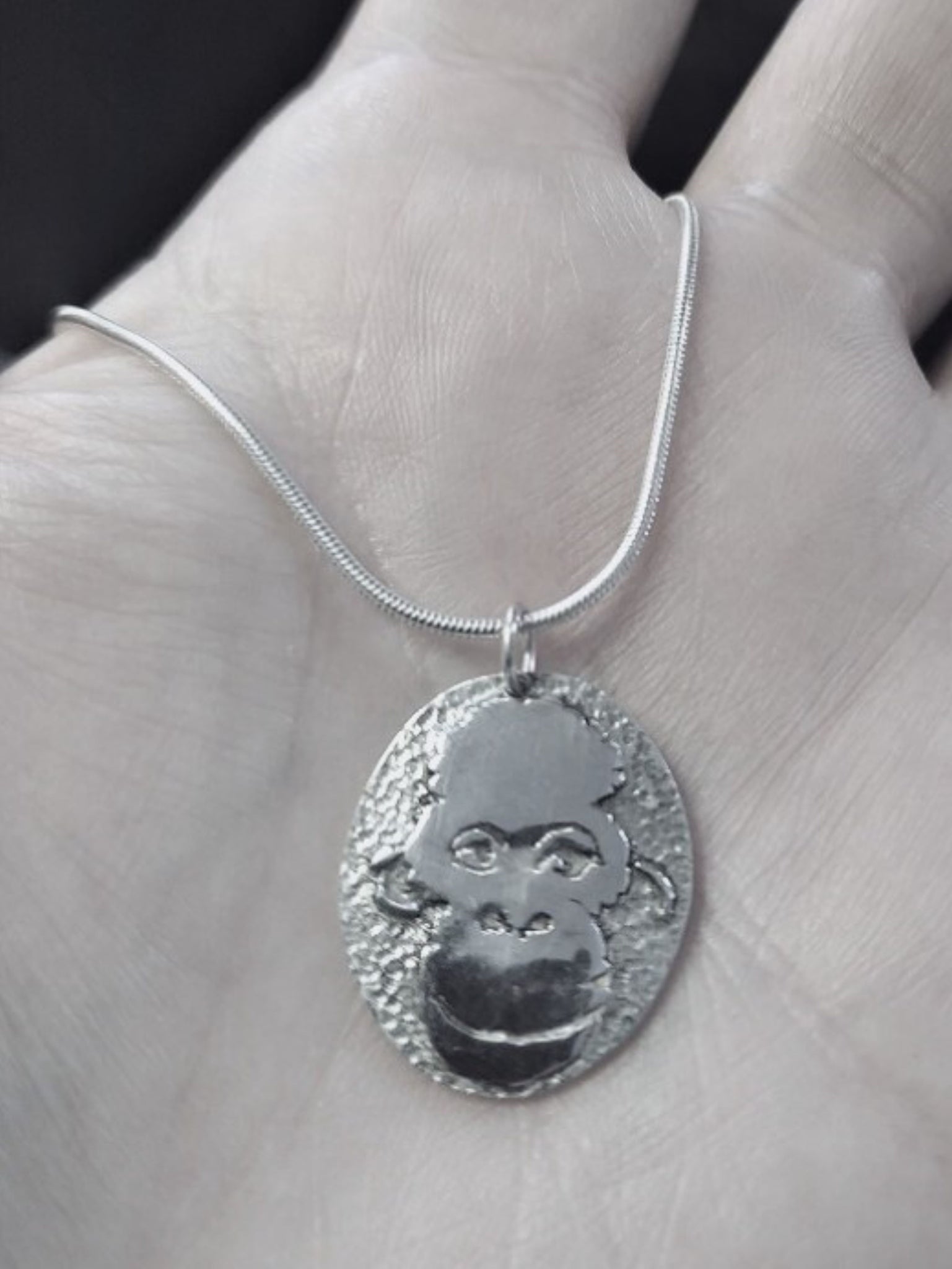 An einer feinen Schlangenkette aus Sterlingsilber ist der ovale Anhänger aus 935er Gusssilber platziert. In der Bearbeitung wird auf Nachhaltigkeit geachtet und auf Chemikalien verzichtet.